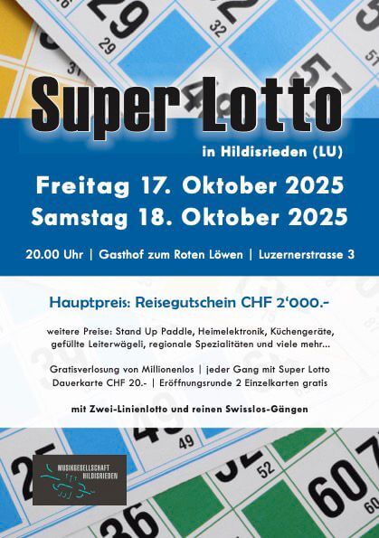 Am 17. und 18. Oktober 2025 heisst es wieder Super Lotto in Hildisrieden! 🎉